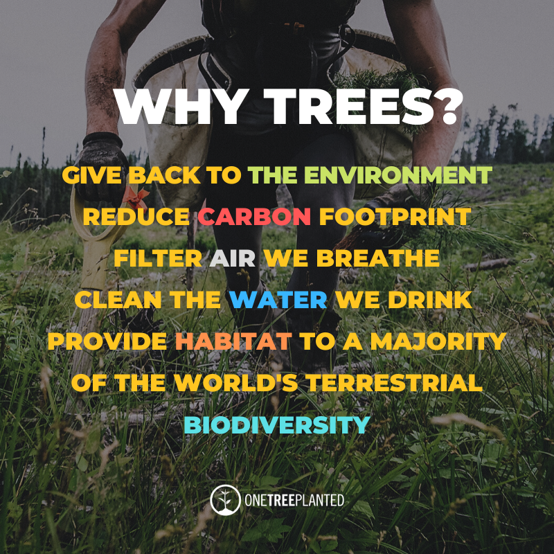 One Tree Planted is focused on the six pillars of global reforestation- air, water, biodiversity, social impact, health, and climate. Planting trees is one of the best ways to combat the damaging effects of climate change. Trees also provide tremendous social impacts by providing jobs to over 1.6 billion people, empowering women in underdeveloped nations, and supporting communities devastated by environmental damage.